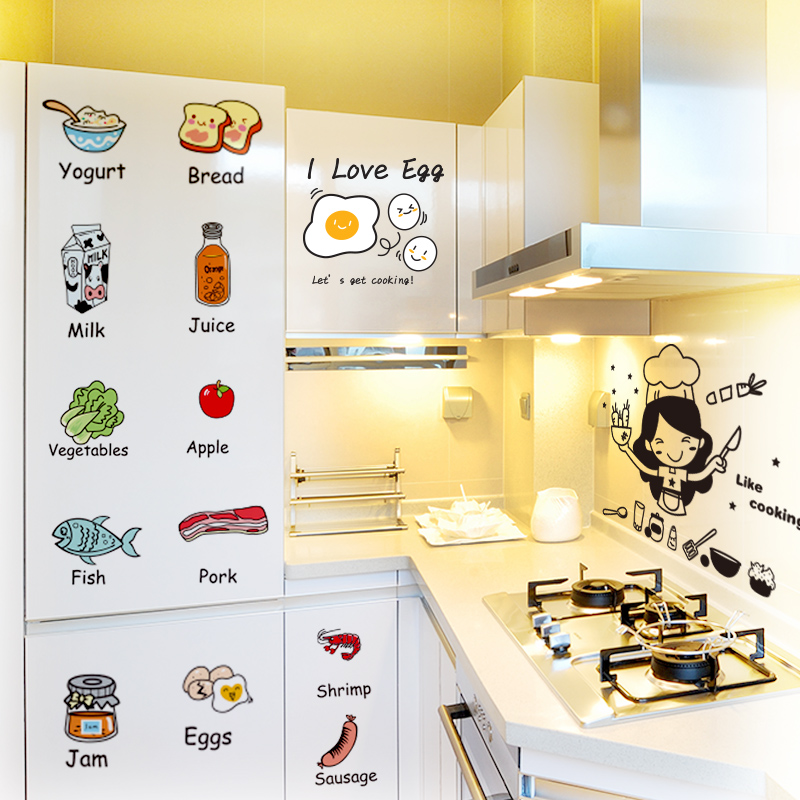 Kitchen Cupboard Door Cartoon Cute Food Fridge Sticker Waterproof