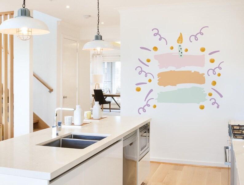 Wall Tattoo Kitchen Party Cake In Colour Etsy
