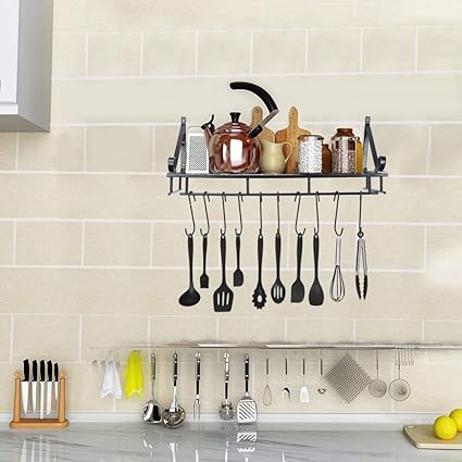 Amazon Com Yunzyun Kitchen Wall Pot Pan Rack Decorative Wall