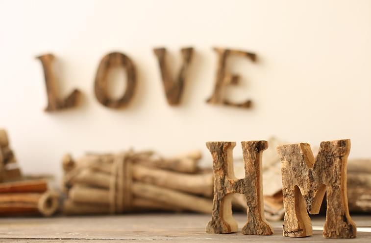 Nordic Style Vintage Original Wooden Natural Bark English Letters